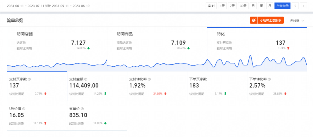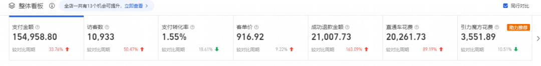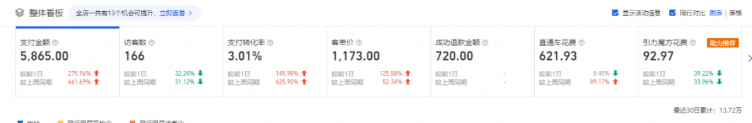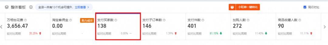 1.付費(fèi)板塊投入不大,只做了付費(fèi)的直通車(chē)引力魔方基礎(chǔ)模塊 店鋪新客成交少;