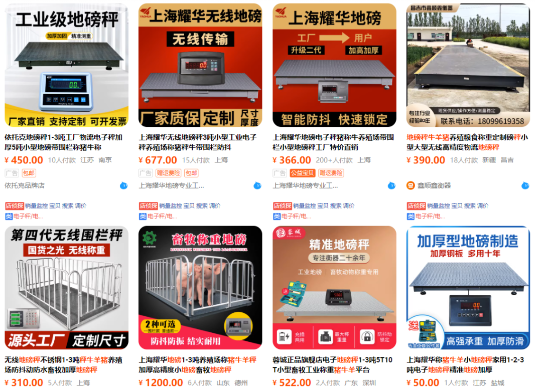 該店鋪售賣(mài)的地磅秤產(chǎn)品客單價(jià)在600-1000+不等,整體客單價(jià)偏高。接手前,商家齊樂(lè)將店鋪的定位人群放在了養(yǎng)殖戶(hù)群體,個(gè)體戶(hù)上,整體的需求量小,市場(chǎng)提升空間有限。