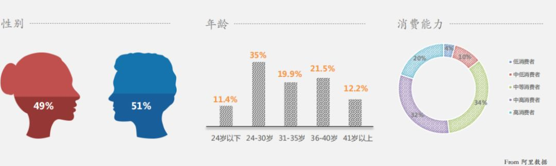從阿里數(shù)據(jù)的分析內容可看出,如圖1所示,在中國旅游客群中,男性以51%的占比,略高于女性。以24-40歲的年輕人群為主,占比高達76.4%,且85.7%的客群具有中高級消費能力。