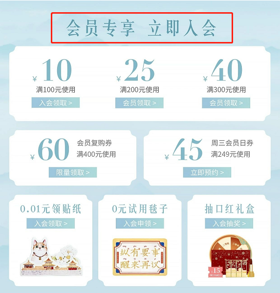 除此之外,瑾栩也加強了視覺觸點,引導消費者入會加深流量價值。強化品牌IP特點,利用和競品與眾不同的風格,增加消費者對品牌IP的印象。