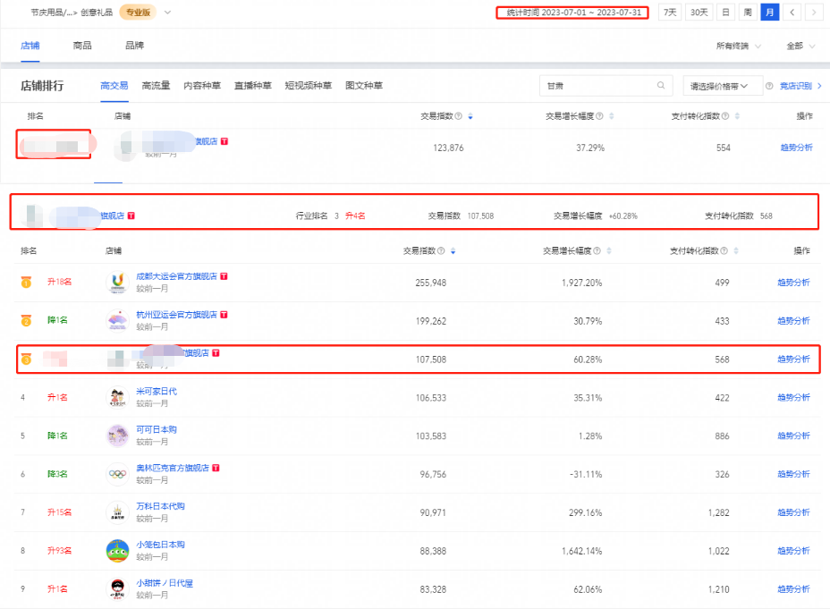 3.創(chuàng)意禮品類目新上榜行業(yè)前100名內,細分類目上榜行業(yè)第3