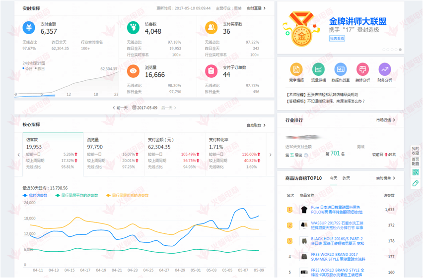這是一家C店男裝類目店鋪,店鋪是在4月底接手的,店鋪日銷售在2w左右,店鋪有一定基礎(chǔ);但是自然搜索不夠多,產(chǎn)品沒有小爆款。接手后火蝠團(tuán)隊(duì)進(jìn)行了行業(yè)分析和自身店鋪數(shù)據(jù)分析,進(jìn)行了標(biāo)題還有主圖優(yōu)化、推廣、活動(dòng)等節(jié)點(diǎn)規(guī)劃,直通車推廣方向上進(jìn)行了大幅度調(diào)整,以及對(duì)5.9-5.10新勢(shì)力活動(dòng)的策劃。